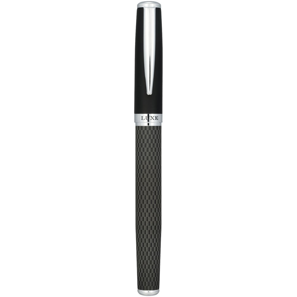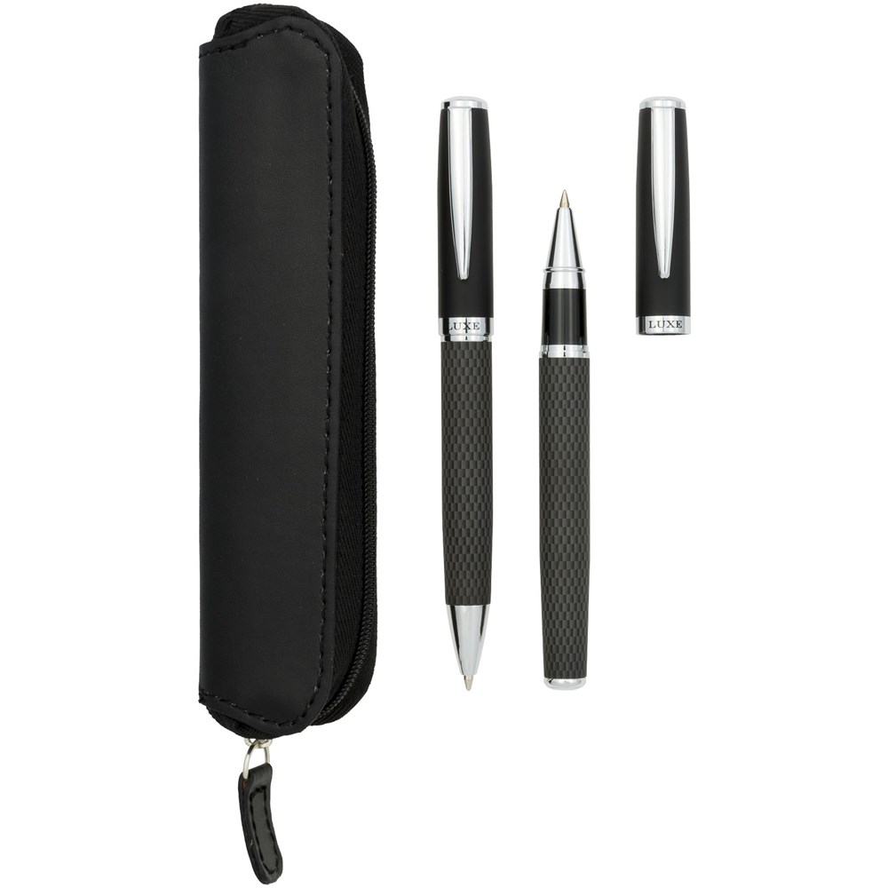 Dieses exklusiv entworfene Kugelschreiber- und Tintenrollerstift-Paar kommt in einer bedruckten Kohlefaser-Ausführung, für eine subtile Interpretation von Schwarz. Inklusive hochwertigem Schutzbeutel, verpackt in einer „LUXE“-Geschenkschachtel.