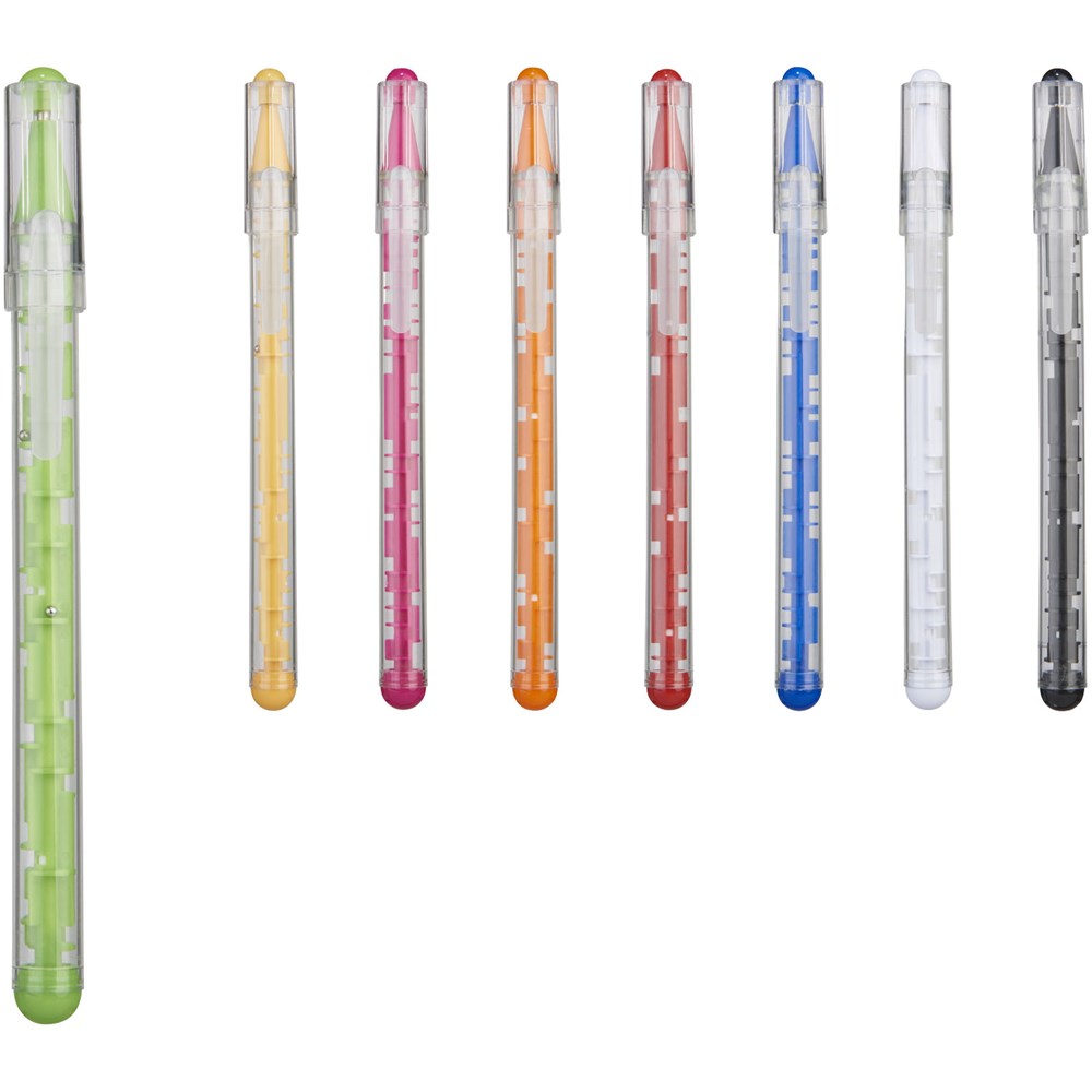 Der perfekte Kugelschreiber für Stress und Langeweile. Rollen Sie eine von zwei Kugeln bis zum Ende des Labyrinths und schreiben Sie Ihren Weg zur Konzentration und Entspannung.