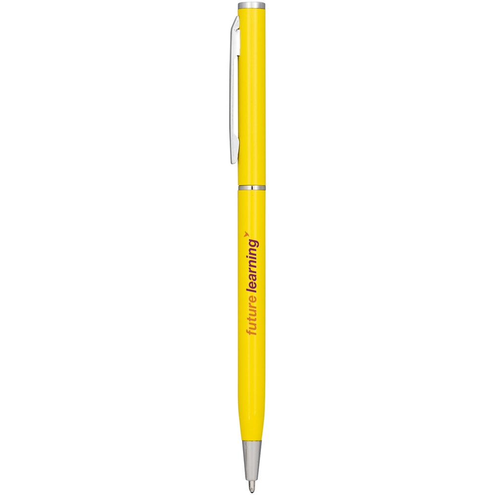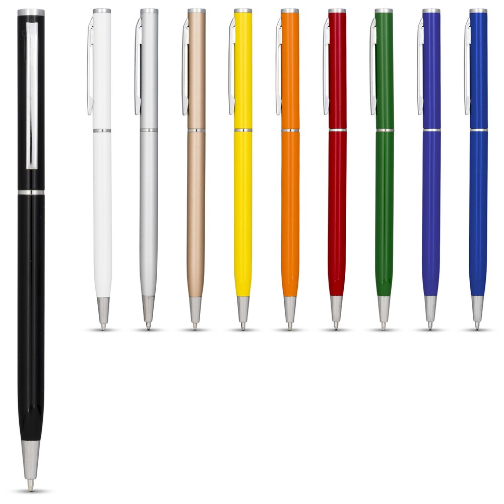 Der schlanke Kugelschreiber kommt mit einer Aluminiumglasur und Drehmechanik.