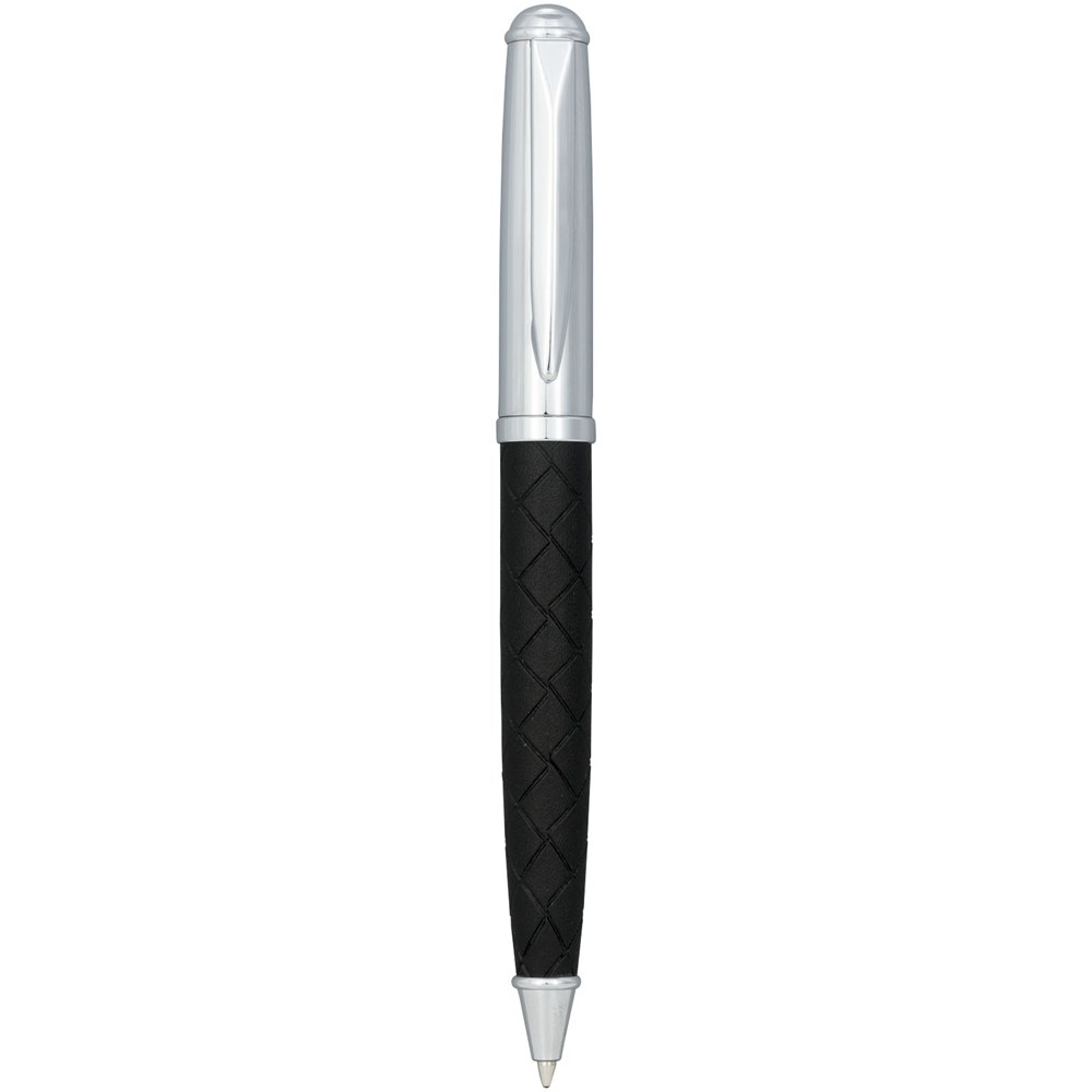 Kugelschreiber in exklusivem Design, das untere Gehäuse ist mit Leder in einem Kreuzlinienmuster umwickelt. Inklusive einer hochwertigen schwarzen Ersatzmine und verpackt in einer „LUXE“-Geschenkschachtel (16 x 4,5 x 2,5 cm).