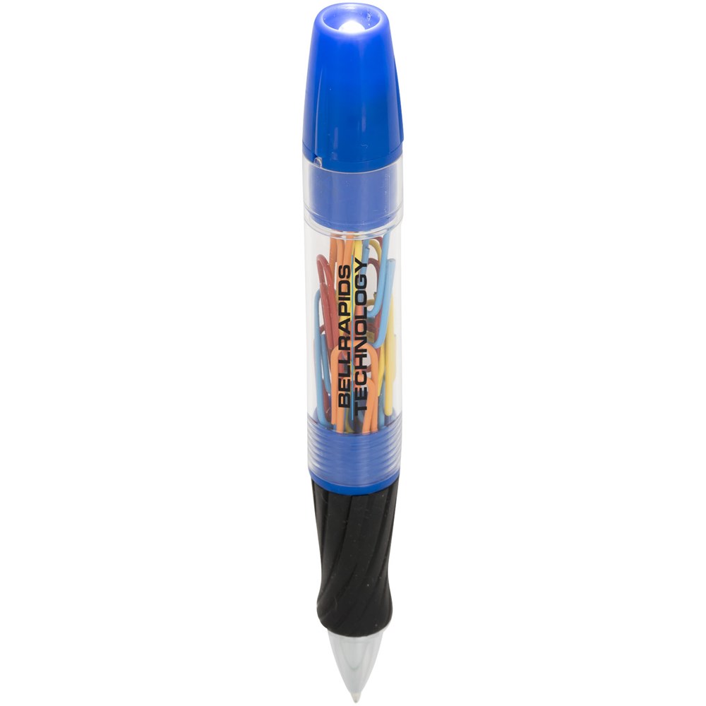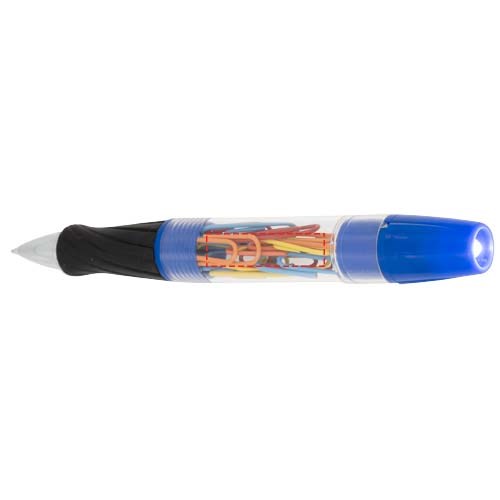 Kugelschreiber mit Drehmechanismus in der Spitze, abschraubbarer Schaft mit Büroklammern und LED... mehr