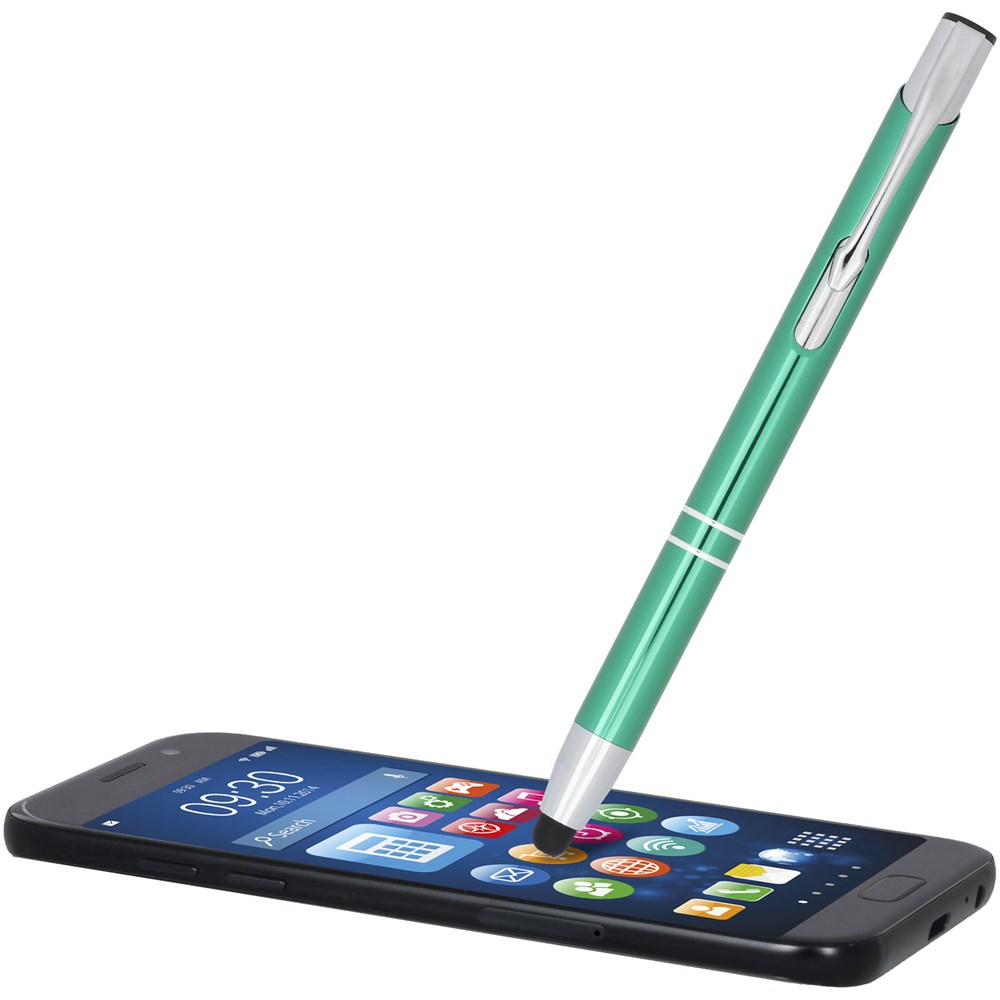 Der metallisch eloxierte Kugelschreiber verfügt über einen integrierten Eingabestift an der Stiftspitze. Der Stift ist in einer Vielzahl von Farben erhältlich und hat eine eloxierte Oberfläche, die ihm einen markanten Glanz verleiht. Das umfangreiche und beliebte Moneta-Sortiment ist in vielen verschiedenen Stilen und Ausführungen erhältlich.