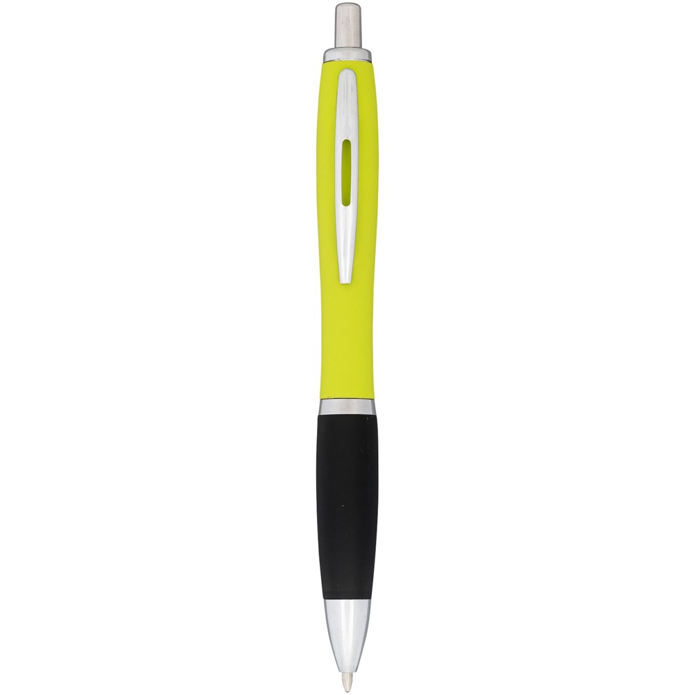 Nash Kugelschreiber mit Klickmechanismus mit farbigem Schaft mit einer weichen Oberfläche in einer Menge kräftiger Farben. Mit schwarzer Mine geliefert.