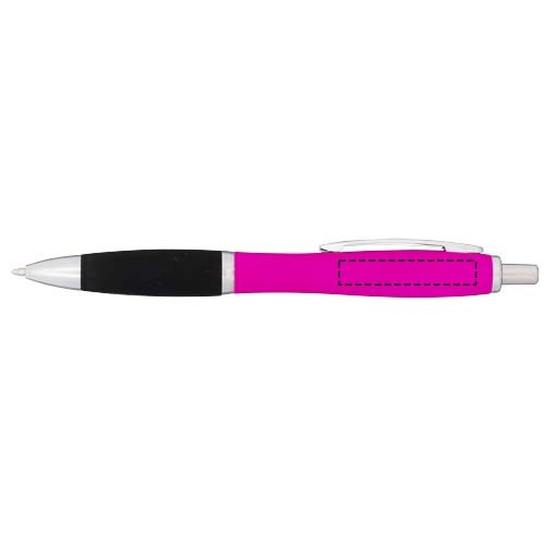 Nash Kugelschreiber mit Klickmechanismus mit farbigem Schaft mit einer weichen Oberfläche in einer Menge kräftiger Farben. Mit schwarzer Mine geliefert.