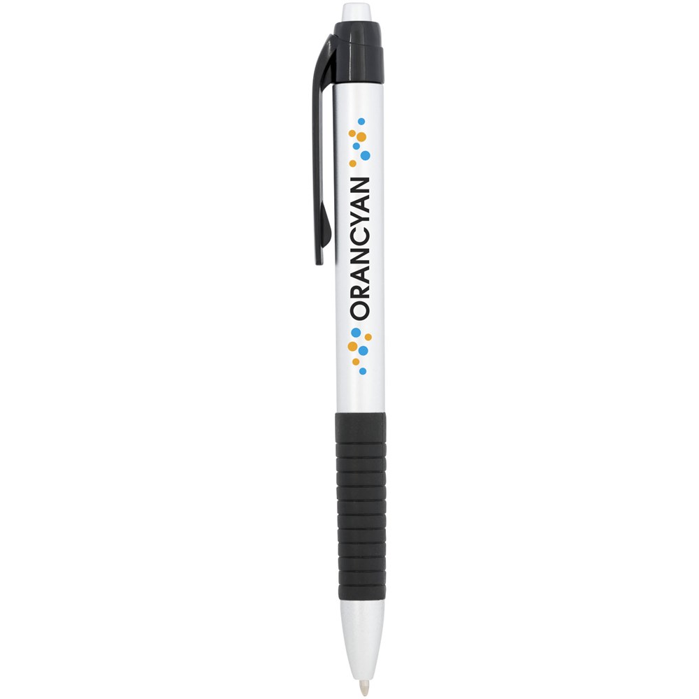 Kugelschreiber mit Klickmechanismus mit Metallic-Oberfläche und gummiertem Griff.