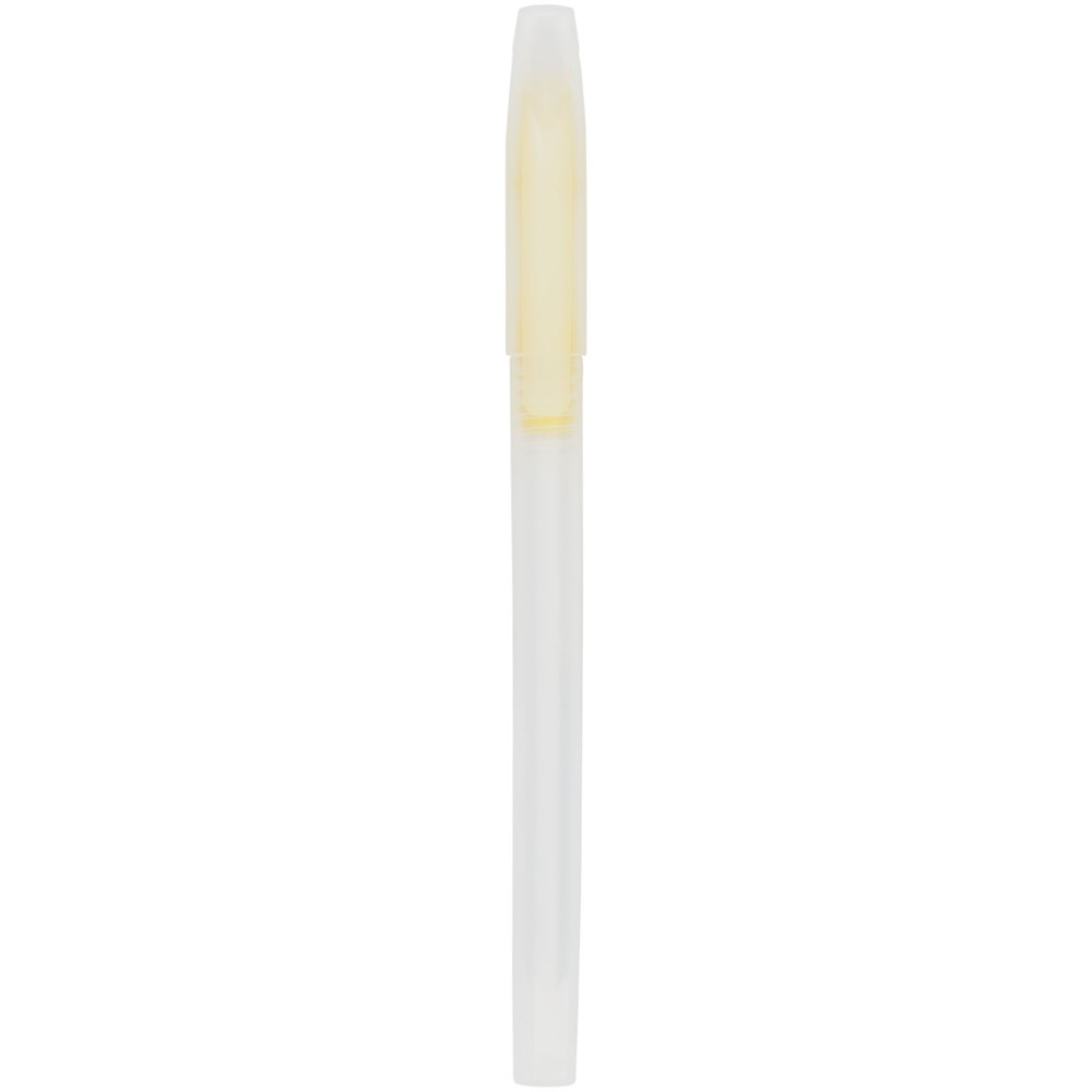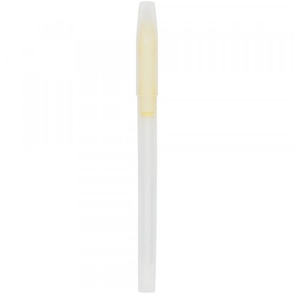 Transparenter Kugelschreiber mit abnehmbarer Kappe und farbigem Akzent.