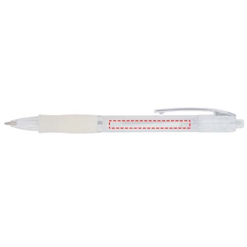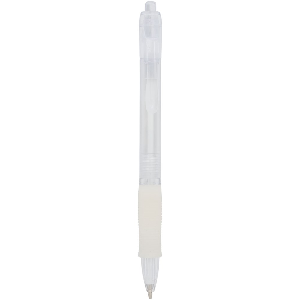 Farbiger Kugelschreiber mit Klickmechanismus mit transparentem Schaft und gummiertem Griff in passender Farbe.