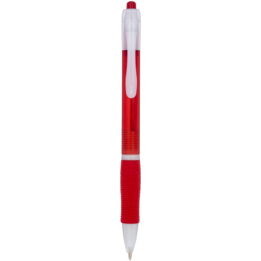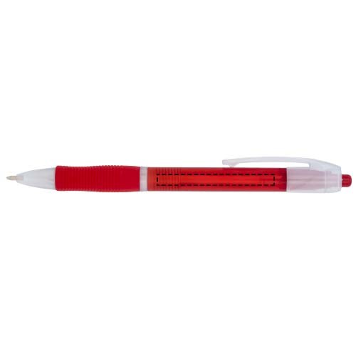 Farbiger Kugelschreiber mit Klickmechanismus mit transparentem Schaft und gummiertem Griff in passender Farbe.