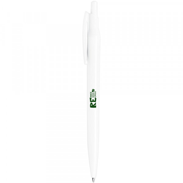 Kugelschreiber mit Klickmechanismus aus zertifiziertem, recyceltem PET, das von gebrauchten Wasser- und Sodaflaschen stammt (mit Ausnahme der Mine und der Feder). Eine 500 ml Flasche wird zur Herstellung eines Kugelschreibers verwendet. Enthält eine europäische X20-Mine mit dezenter Tinte und einer Schreiblänge von etwa 2000 Metern. Auch mit einer schwarzen Tintenmine erhältlich (107722). Hergestellt in Italien.
