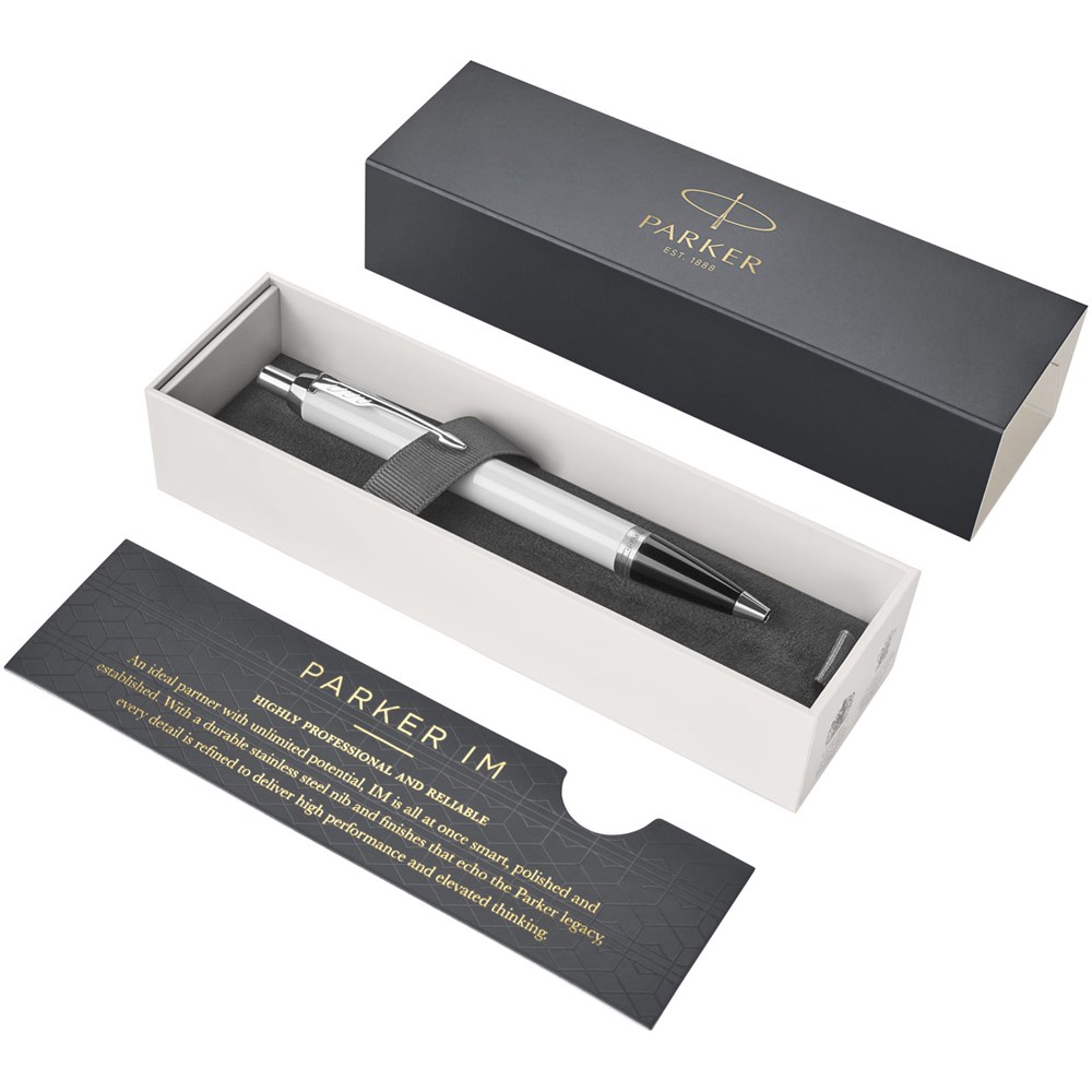 Sehr professionell und zuverlässig. Ein idealer Partner mit unbegrenztem Potenzial. Der Parker IM ist zugleich intelligent, poliert und etabliert. Mit einer langlebigen Edelstahlfeder und Ausführungen, die das Erbe von Parker widerspiegeln. Jedes Detail ist verfeinert, um immer ein zuverlässiges Schreibgefühl zu bieten. Inklusive einer Parker Geschenkschachtel. Wird mit einer patentierten QuinkFlow-Ersatz-Kugelschreibermine geliefert. Exklusives Design.