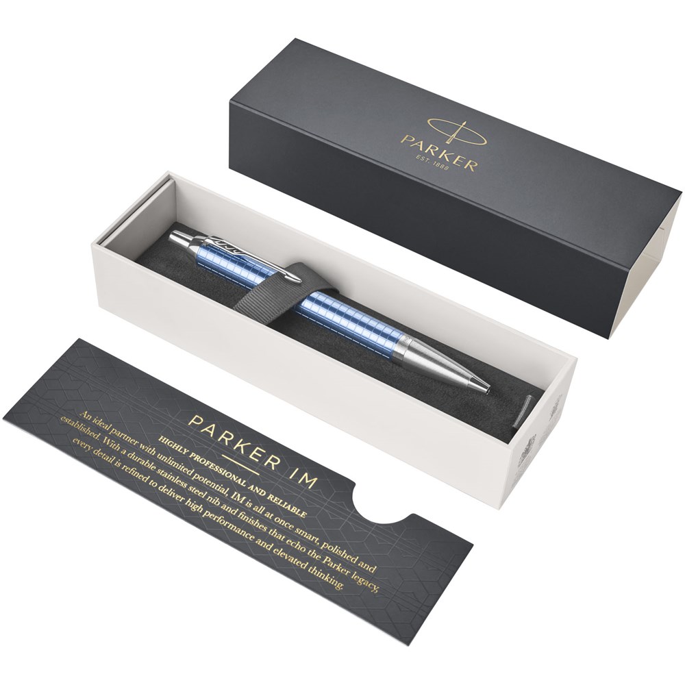 Sehr professionell und zuverlässig. Ein idealer Partner mit unbegrenztem Potenzial. Der Parker IM ist zugleich intelligent, poliert und etabliert. Mit einer langlebigen Edelstahlfeder und Ausführungen, die das Erbe von Parker widerspiegeln. Jedes Detail ist verfeinert, um immer ein zuverlässiges Schreibgefühl zu bieten. Inklusive einer Parker Geschenkschachtel. Wird mit einer patentierten QuinkFlow-Ersatz-Kugelschreibermine geliefert. Exklusives Design.