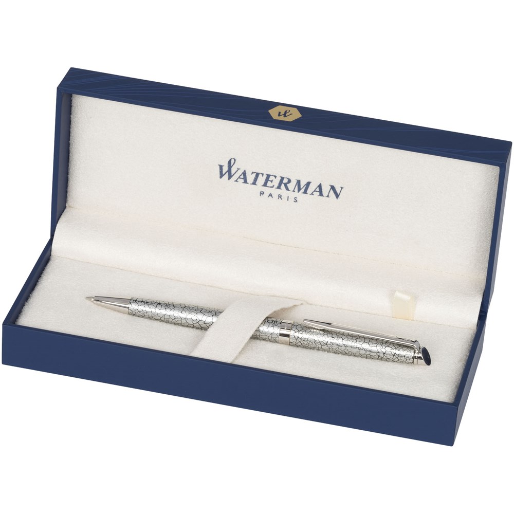 Die neue Hémisphère Premium-Kollektion mit fließenden Lasermustern, die die wunderschöne Form der Stifte respektieren und Trends wie natürliche/organische Elemente aufgreifen. Erhältlich als Kugelschreiber, Rollerball-Stift und Füllfederhalter und in 3 Farben/Designs: Eine lebhaft blaue Lackoberfläche komplett mit aufwendigem Signaturmuster eingeätzt in die Kappe, raffinierter Rose-Oberfläche mit subtil eingeätztem Muster und einem unvorhersehbarem und aufwendigem Muster mit palladium-plattierten Verzierungen. Verpackt in einem Waterman-Geschenkkarton.