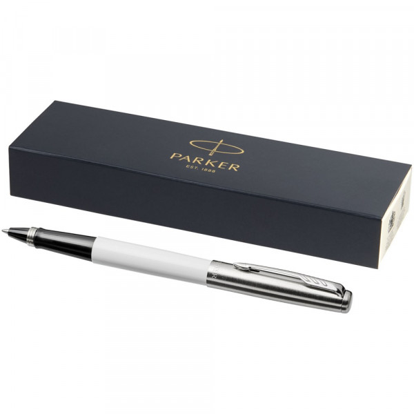 Der Jotter-Tintenroller ist eine moderne Interpretation des originalen Kultobjekts. Mit dem legendären glänzenden Kunststoffschaft, der polierten Edelstahlkappe und dem Pfeilclip. Verpackt in einer Parker-Geschenkbox.