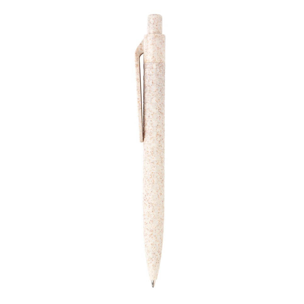 Dieser schicke Stift besteht anteilig aus den Überbleibseln der Weizenernte, so ist er umweltfreundlich und nachhaltiger als reine Kunststoffstifte. ( 40% Weizenstroh und 60% ABS) Mit blauschreibender Dokumental-Mine für bis zu 1200m und einem TC-Ball für ein sanftes Schreibgefühl.