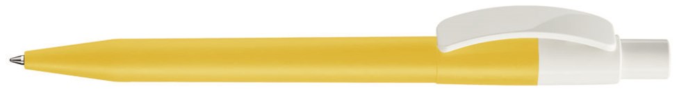 Druckkugelschreiber mit farbig mattem Schaft, Bogenclip und Drücker in glänzend weiß.