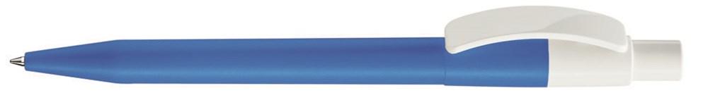 Druckkugelschreiber mit farbig mattem Schaft, Bogenclip und Drücker in glänzend weiß.