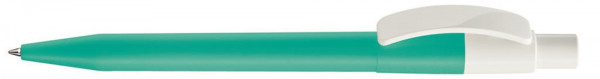 Druckkugelschreiber mit farbig mattem Schaft, Bogenclip und Drücker in glänzend weiß.