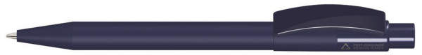 Druckkugelschreiber unifarben mit Bogenclip und matt gedecktem Gehäuse aus 100% recyceltem Post-Consumer-Kunststoff. Die Modelle sind mit Recyclingzeichen gekennzeichnet. Aufgrund der Besonderheit des Materials (Post-Consumer Recycled Plastic) sind produktionstechnische Farbschwankungen gegeben.