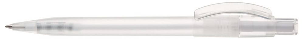 Druckkugelschreiber mit transparent gefrostetem Schaft, Bogenclip und Drücker glänzend transparent.