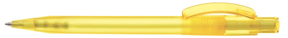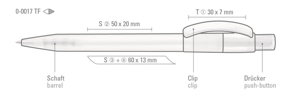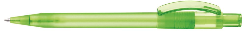 Druckkugelschreiber mit transparent gefrostetem Schaft, Bogenclip und Drücker glänzend transparent.