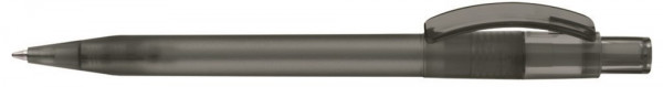 Druckkugelschreiber mit transparent gefrostetem Schaft, Bogenclip und Drücker glänzend transparent.