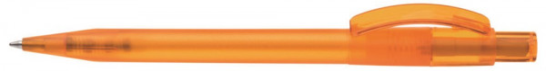 Druckkugelschreiber mit transparent gefrostetem Schaft, Bogenclip und Drücker glänzend transparent.
