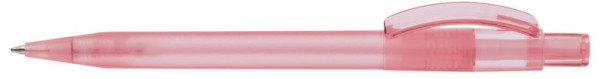 Druckkugelschreiber mit transparent gefrostetem Schaft, Bogenclip und Drücker glänzend transparent.