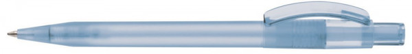 Druckkugelschreiber mit transparent gefrostetem Schaft, Bogenclip und Drücker glänzend transparent.