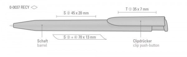 Druckkugelschreiber mit matt gedecktem Gehäuse aus 100% recyceltem Kunststoff. Die Modelle sind mit Recyclingzeichen gekennzeichnet. Aufgrund der Besonderheit des Materials (ABS Recycled Plastic) sind produktionstechnische Farbschwankungen gegeben.