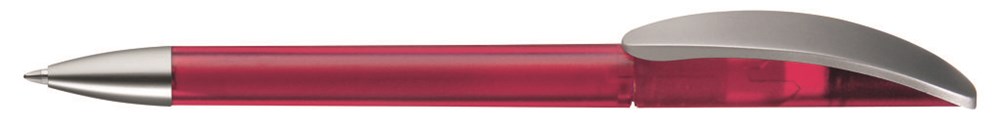 Drehkugelschreiber mit transparent gefrostetem oder gedecktem Gehäuse. Matt silberner Bogenclip und schwerer, matt verchromter Metallspitze.