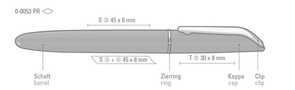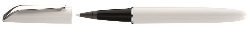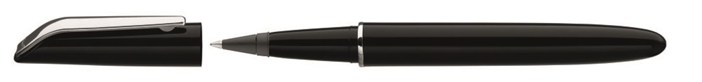 Patronenroller mit gedeckt glänzendem Gehäuse, Metallclip, Zierring glanzverchromt. Das Patronen-Roller-System, ähnlich dem Prinzip des Füllhalters, ist mit Standard-Tintenpatronen wieder auffüllbar.
