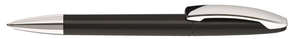 Drehkugelschreiber mit gedeckt glänzendem Gehäuse, Metallclip und Spitze glanzverchromt.