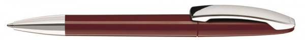 Drehkugelschreiber mit gedeckt glänzendem Gehäuse, Metallclip und Spitze glanzverchromt.