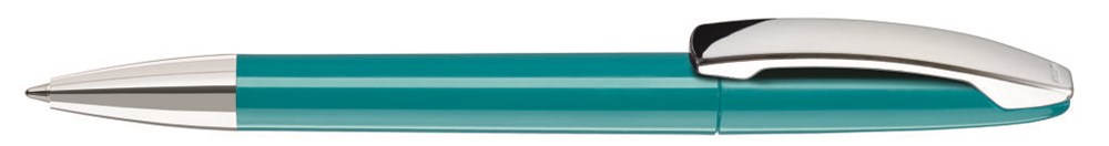 Drehkugelschreiber mit gedeckt glänzendem Gehäuse, Metallclip und Spitze glanzverchromt.