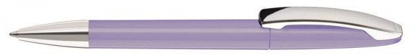Drehkugelschreiber mit gedeckt glänzendem Gehäuse, Metallclip und Spitze glanzverchromt.