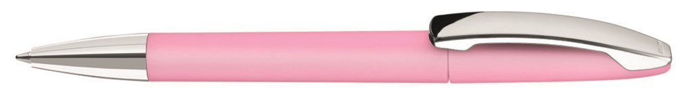 Drehkugelschreiber mit farbigem Softtouch-Gehäuse, silber glänzender Spitze und glänzendem Metallclip.