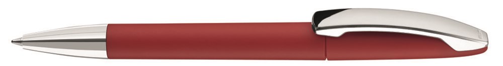 Drehkugelschreiber mit farbigem Softtouch-Gehäuse, silber glänzender Spitze und glänzendem Metallclip.