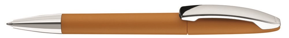 Drehkugelschreiber mit farbigem Softtouch-Gehäuse, silber glänzender Spitze und glänzendem Metallclip.