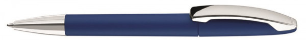 Drehkugelschreiber mit farbigem Softtouch-Gehäuse, silber glänzender Spitze und glänzendem Metallclip.