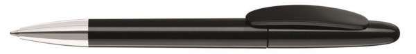 Drehkugelschreiber mit gedeckt glänzendem Gehäuse und silber glänzender Spitze.