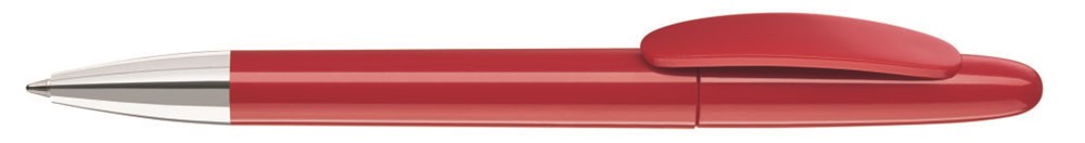 Drehkugelschreiber mit gedeckt glänzendem Gehäuse und silber glänzender Spitze.