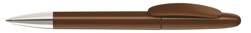 Drehkugelschreiber mit gedeckt glänzendem Gehäuse und silber glänzender Spitze.