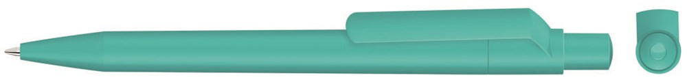 Druckkugelschreiber mit uni matt gedecktem Gehäuse, Clip, Drücker und Stopfen bzw. in uni weiß gedeckt mit farbigem Stopfen. Ab 2.000 Stück kann das Modell farblich kombiniert werden.