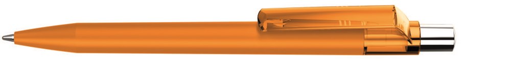 Druckkugelschreiber mit Softtouch-Schaft, transparent glänzendem Clip, silber glänzendem Drücker mit farbigem Stopfen.