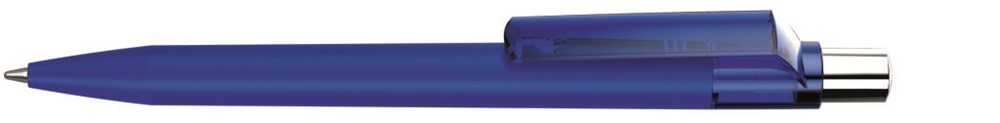 Druckkugelschreiber mit Softtouch-Schaft, transparent glänzendem Clip, silber glänzendem Drücker mit farbigem Stopfen.