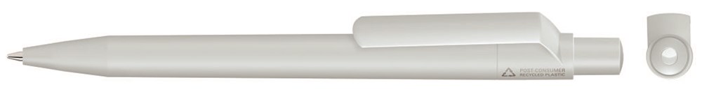 Druckkugelschreiber unifarben mit gedeckt mattem Gehäuse aus 100% recyceltem Post-Consumer-Kunststoff. Die Modelle sind mit Recyclingzeichen gekennzeichnet. Aufgrund der Besonderheit des Materials (Post-Consumer Recycled Plastic) sind produktionstechnische Farbschwankungen gegeben.
