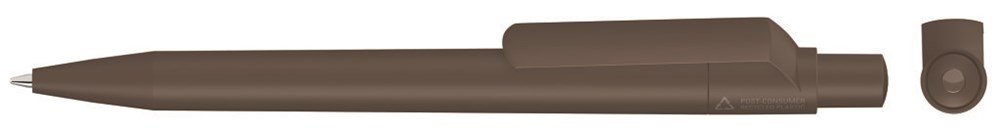 Druckkugelschreiber unifarben mit gedeckt mattem Gehäuse aus 100% recyceltem Post-Consumer-Kunststoff. Die Modelle sind mit Recyclingzeichen gekennzeichnet. Aufgrund der Besonderheit des Materials (Post-Consumer Recycled Plastic) sind produktionstechnische Farbschwankungen gegeben.