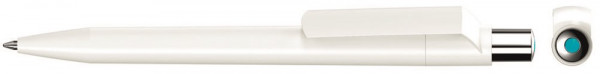Druckkugelschreiber unifarben glänzend gedeckt weiß mit silber glänzendem Drücker und farbigem... mehr