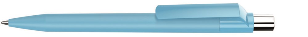Druckkugelschreiber mit Softtouch-Schaft, gedeckt glänzendem Clip, silber glänzendem Drücker mit farbigem Stopfen.
