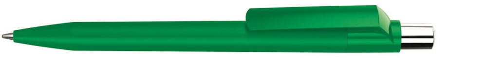 Druckkugelschreiber mit Softtouch-Schaft, gedeckt glänzendem Clip, silber glänzendem Drücker mit farbigem Stopfen.
